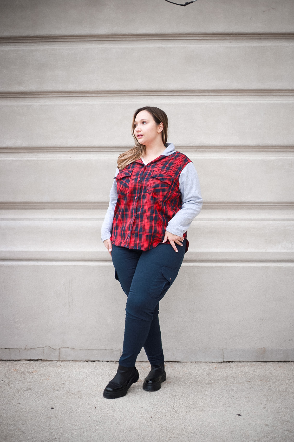Camisa con capucha combinada con mangas y capucha en tela deportiva con lycra.